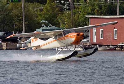 In Quamichan Lake I had to land and takeoff as short as possible. I was impressed about the performance of the Cessna. After the landing I told Tom we would never get out of a lake that was so small as our landing distance. He looked at me and said: Try it. We pretended the lake was smaller, as reference I tried to takeoff abeam a small island. I taxied to the very end of the lake, turned around and applied full power during the turn into the wind. With full elevator pressure I waited for the plowing attitude and as soon as the splashing water came back to the strut I released back pressure and came onto the step. Keeping the airplane at the correct angle I waited for 40 knots. At this speed I had to force one float out of the water, which meant full aileron and a quick release (don’t dig your wing into the water….). On one float we accelerated much better and we took off over the same distance as we needed for the obstacle landing. I said: Oh, wow. I’m impressed… and Tom smiled. 🙂