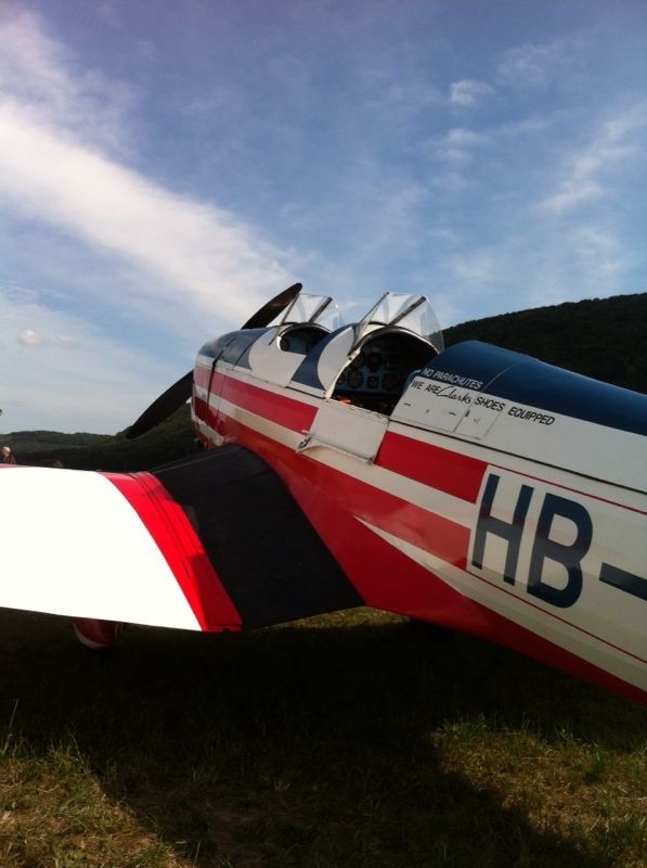 Just returned from a great ‘airfield-gardenparty’ in the north of Switzerland. 🙂 Normally the sailplane field of Schaffhausen is closed to visitors. This weekend they have organised a small airshow and every arriving oldtimer received 20 litres of aviation gasoline as a welcome gift! My dad, my girlfriend and I spent the day having pic-nic underthe wing and asking children if they would like to climb into the cockpit. Especially my father did a great job – the kids had fun! He told many times the story of himself sitting in exactly this airplane as a boy and buying it many years later. This could have been the spark for future pilots. 🙂 We enjoyed beautiful air-displays and yet there was another reason why everybody looked skywards. It seemed to me that Piper Cubs, Cessnas and biplanes attract just as many people. Possibly it is the simplicity of those aeroplanes? They make one feel everybody could own and fly one of them one day – which is a nice thought indeed.